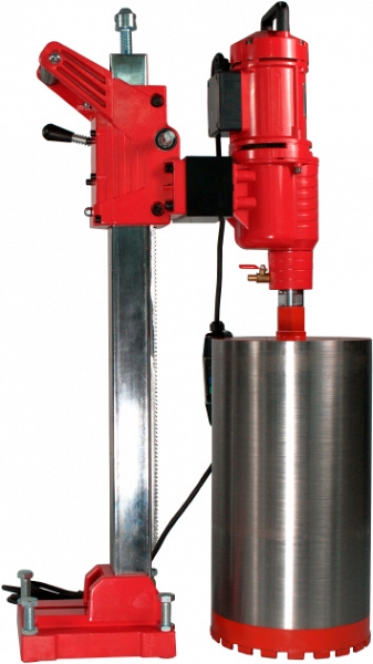 Алмазная сверлильная установка Voll V-Drill 400 (Волл В-Дрилл 400) с мощным двигателем 5,18 кВт предназначена для сверления отверстий Ø 15 – 400 мм в бетоне, железобетоне, включая железобетон с высокой степенью армированности, кирпичной и каменной кладке, граните, мраморе, под прямым углом, с подачей воды. Идеально подходит для строительных и монтажных организаций и фирм, занимающихся монтажом систем отопления, водоснабжения, вентиляции, кондиционирования, а также прокладкой электрических сетей, слаботочных систем. Благодаря компактной конструкции и относительно малому весу обеспечивается легкая транспортировка, а также монтаж и демонтаж установки на рабочем месте.