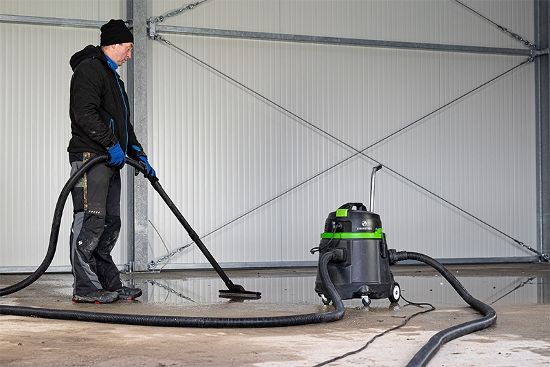 Применение строительного пылесоса для влажной уборки с функцией насоса Eibenstock EPS 50: